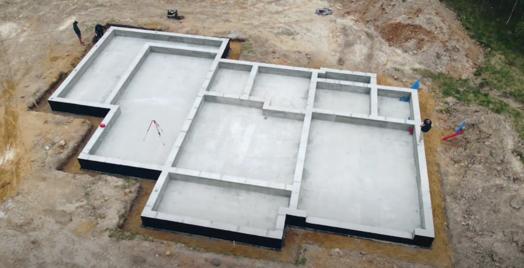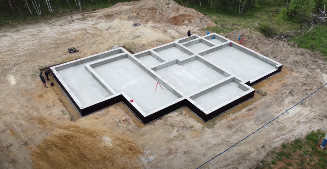 Такая промазка защищает цоколь от проникновения влаги и препятствует разрушению бетона. После того как бетон наберет прочность, а именно через три недели, заказчик продолжит строительство. Здесь будет возведен двухэтажный дом из газобетонного блока. Полный цикл этого проекта занял 15 рабочих дней. Несмотря на сложность конструкции, заказчик высоко оценил скорость, точность и надежность исполнения.